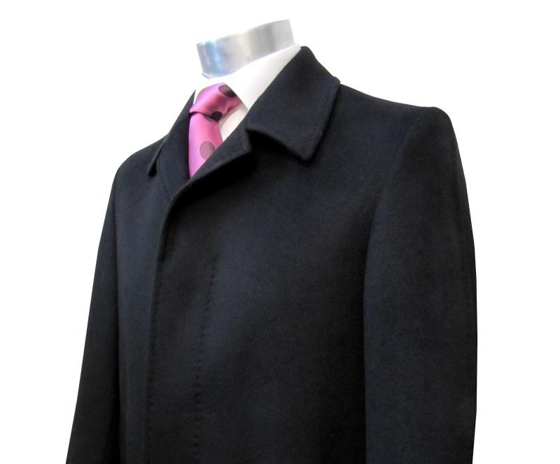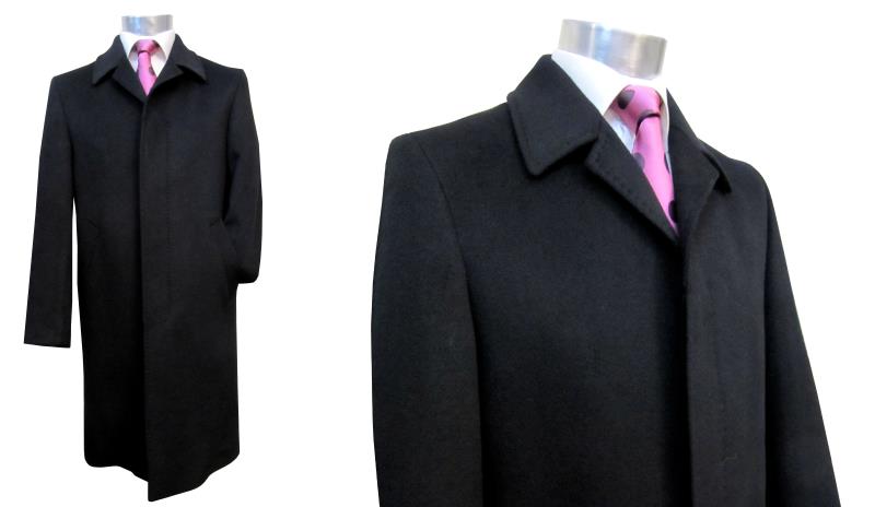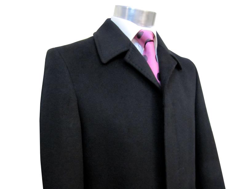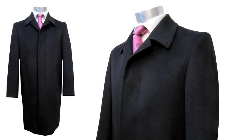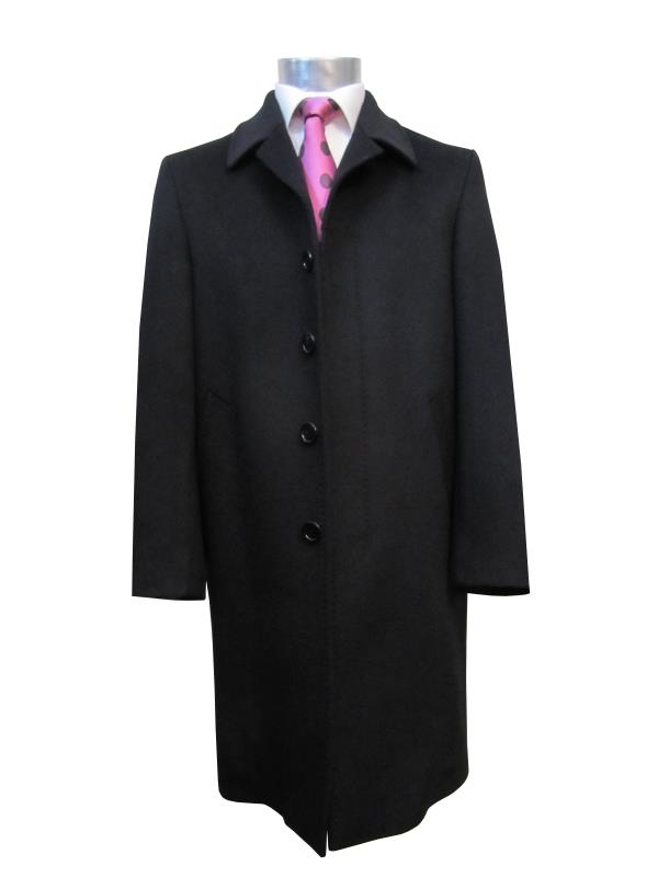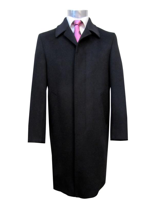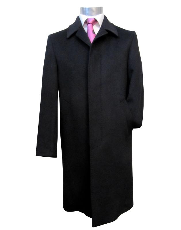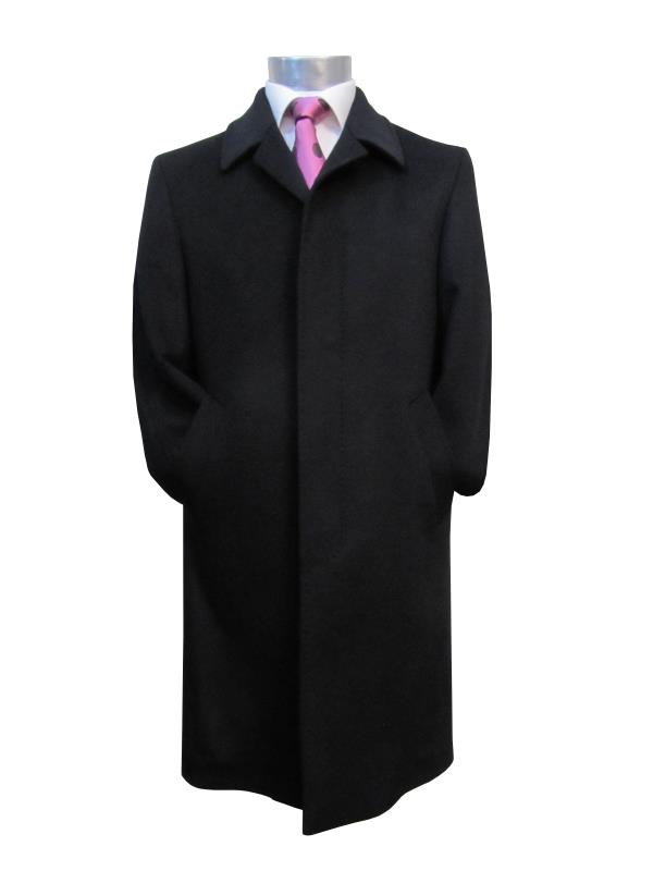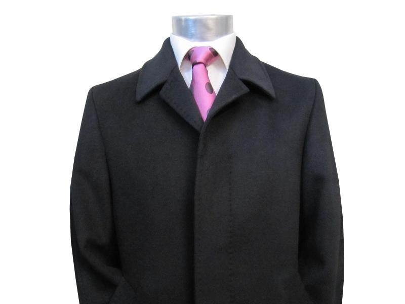Preview: Herren Mantel Schwarz Verdeckte Knopfleiste