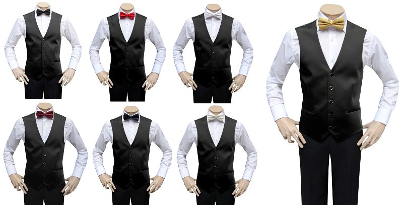 Preview: Slim Fit Herren Hochzeitsweste mit Schwarze Fliege